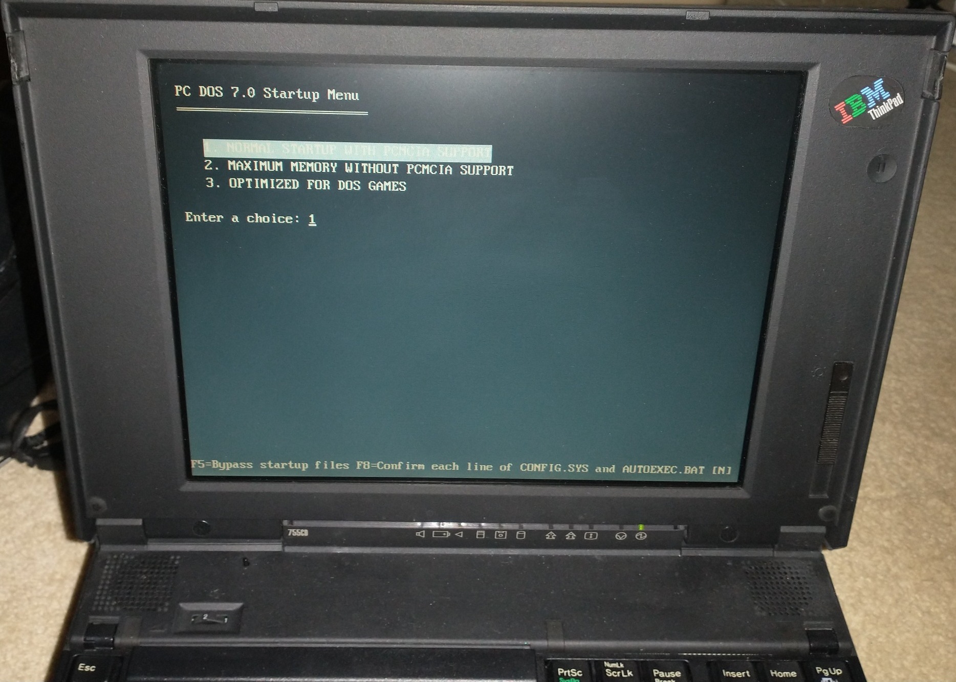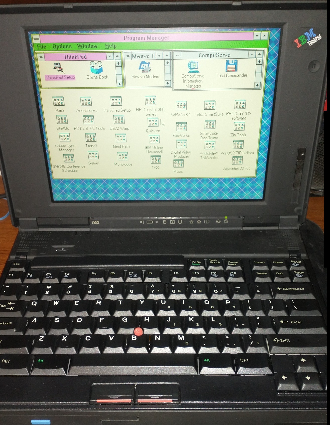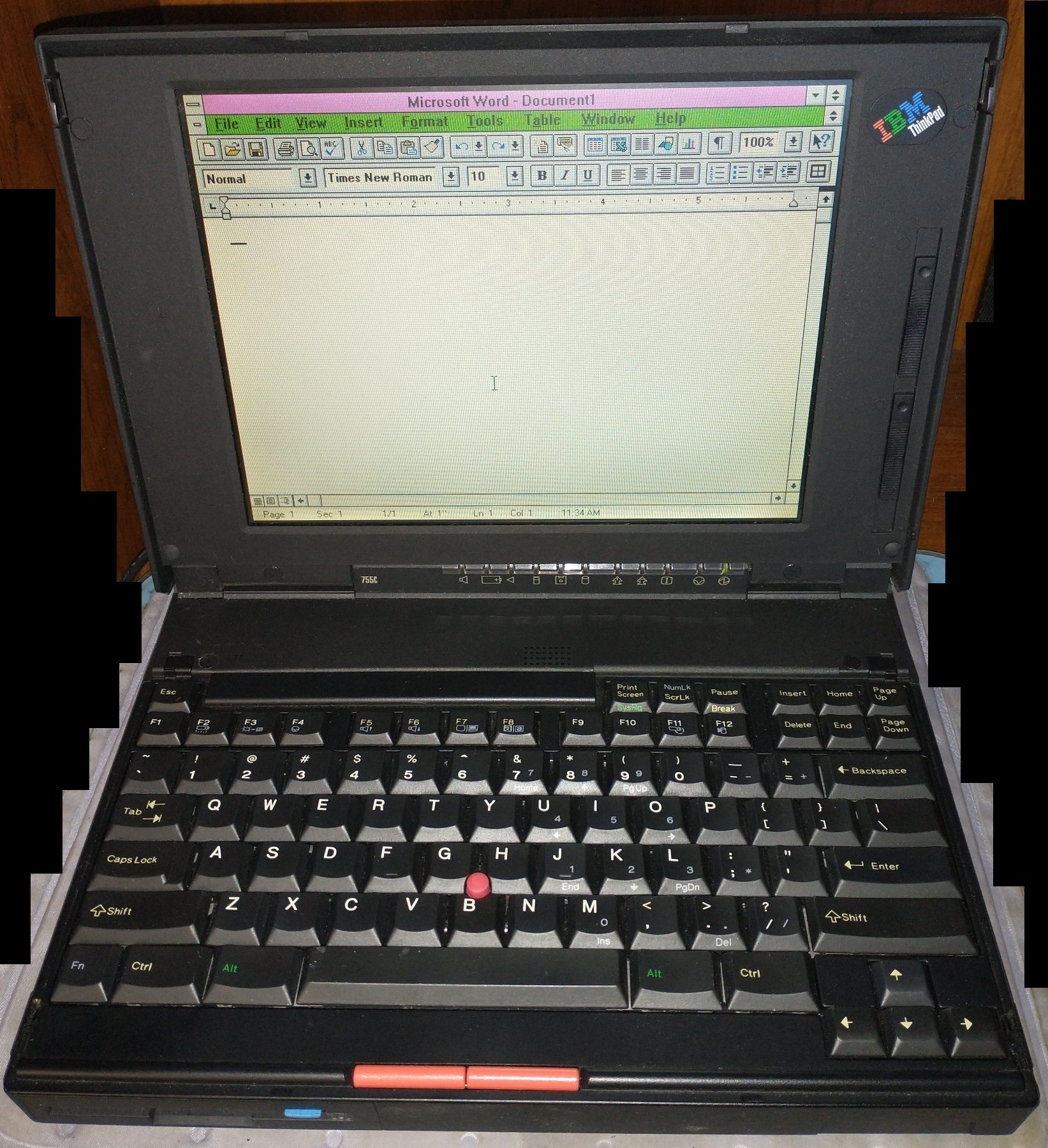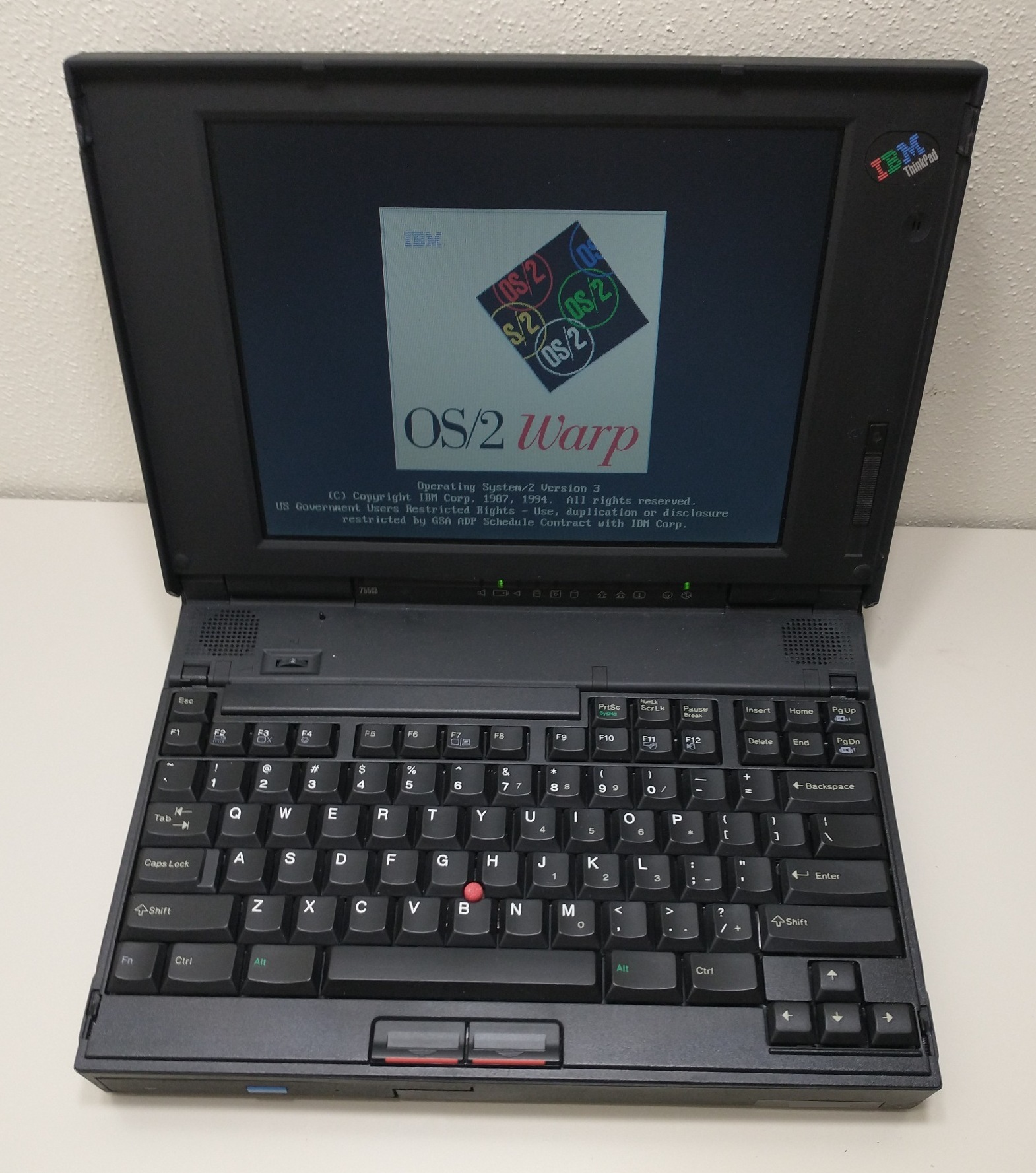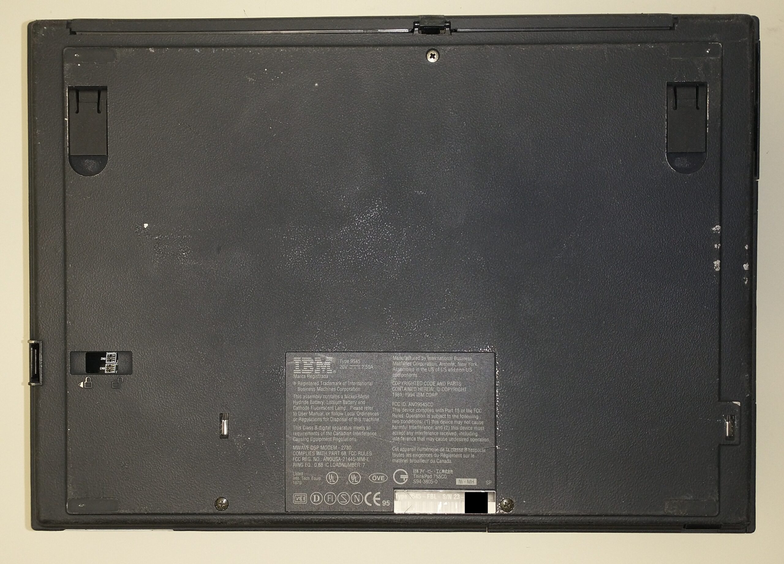 The 755CX was the first Pentium-based ThinkPad, released in 1995 (Press Release), and is the model I have the most of. I originally targeted buying these because some 755CX’s have a superior 800×600 screen and a sound card, although I ended up with one that has a traditional 640×480 screen and no sound card. Ironically, 640×480 is more desirable now because it’s better for MS-DOS gaming, but 755CX’s aren’t the best for MS-DOS games anyway, due to the MWave MIDI/Sound/Modem Card, which is notoriously difficult to set up and use (and uses a larger-than-normal amount of conventional memory).