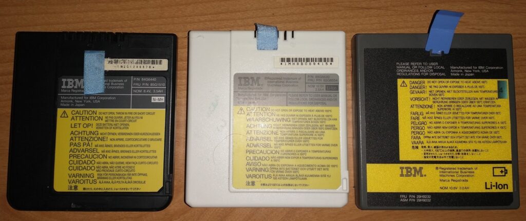 (From left to right: black NiMH, white Li-Ion, black Li-Ion – all 3 work in a Pentium 755CD/CX)