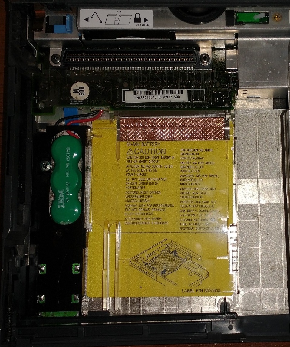 It’s worth noting that all 755, 760, and 770 machines have a Standby Battery in them. These are rechargeable NiMH batteries that allow you to put the laptop into Standby/Sleep mode, and then swap out the main battery without losing power. Unfortunately, they are known to leak and eventually destroy the motherboard. Please remove these ASAP!