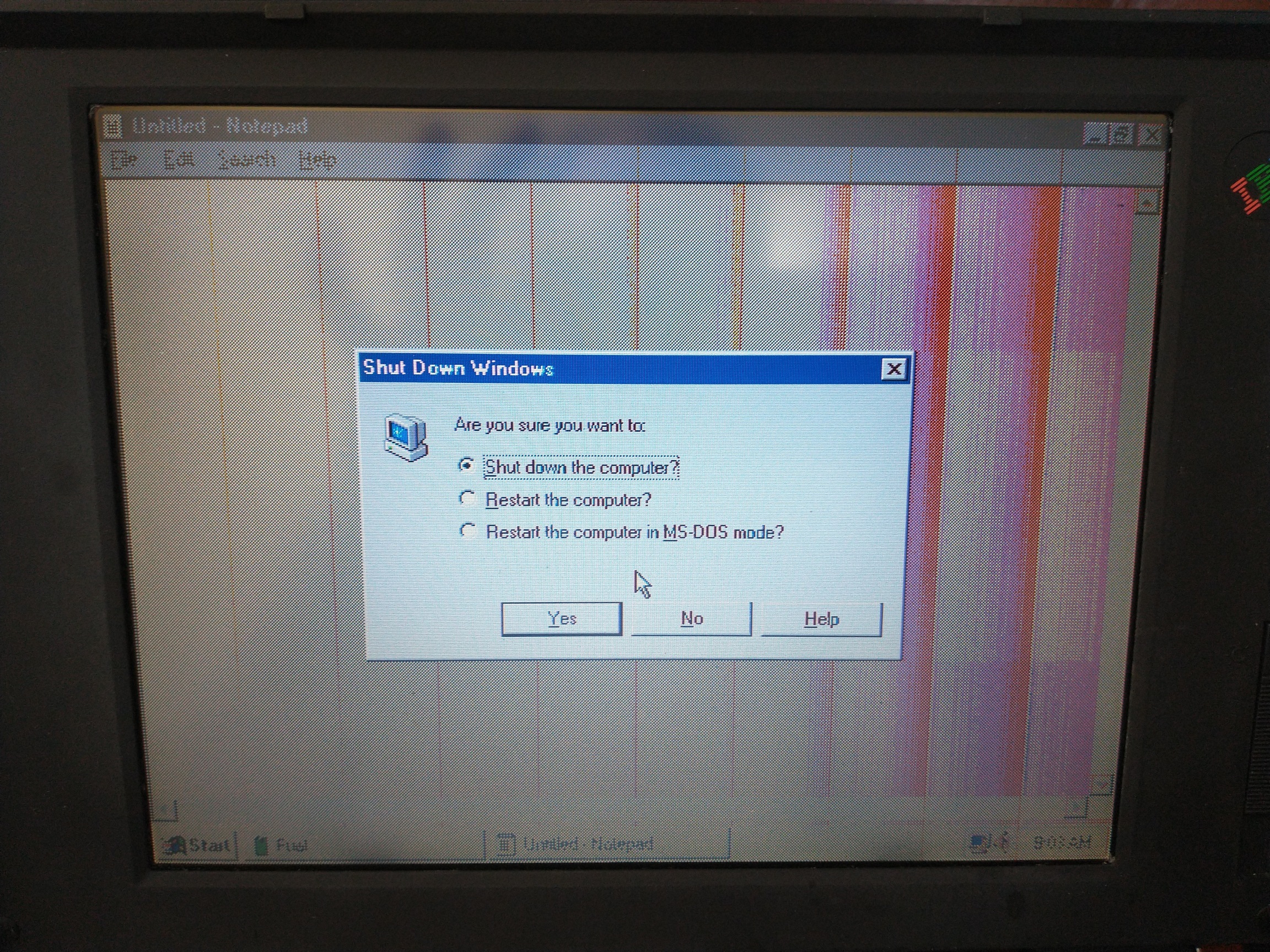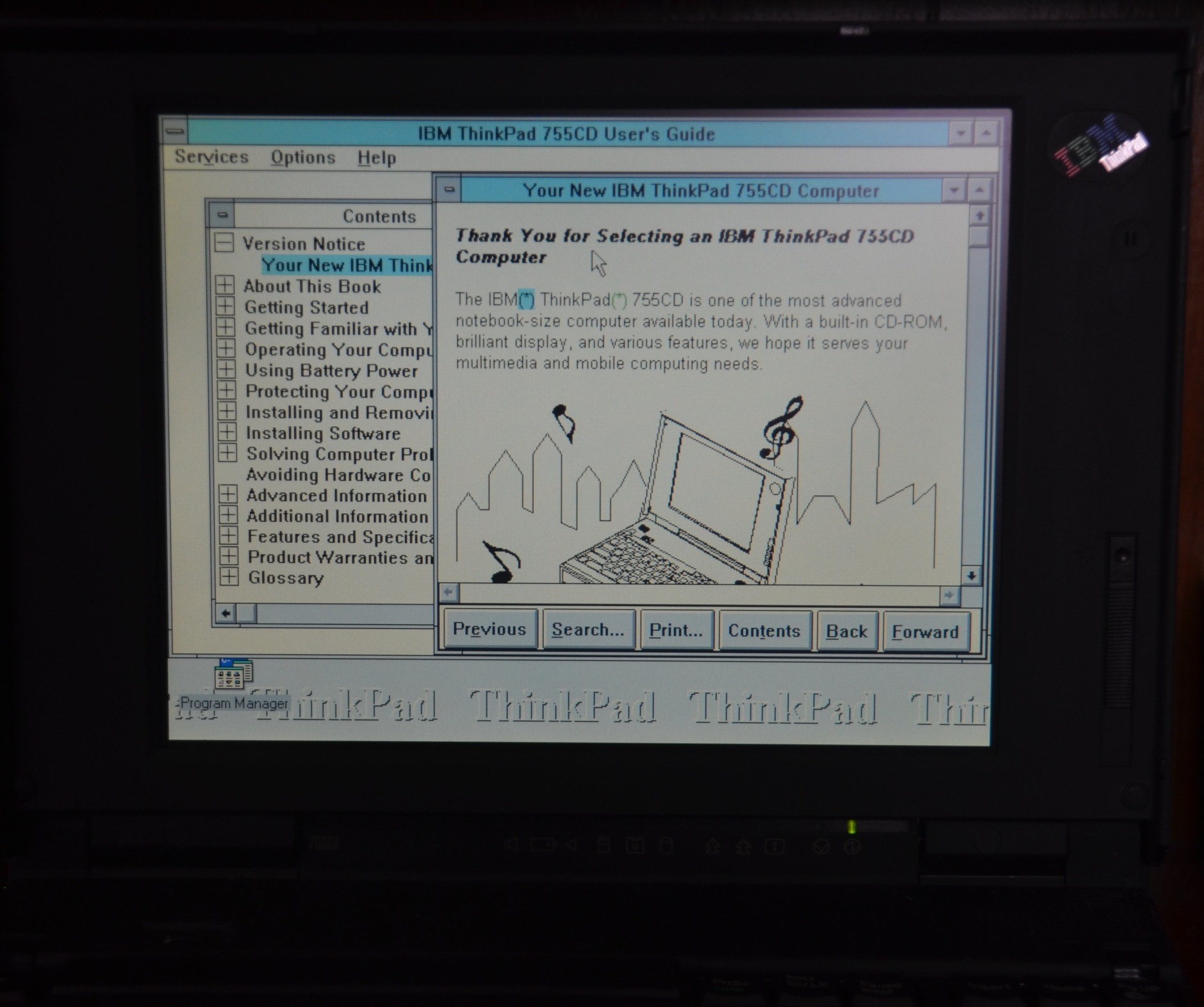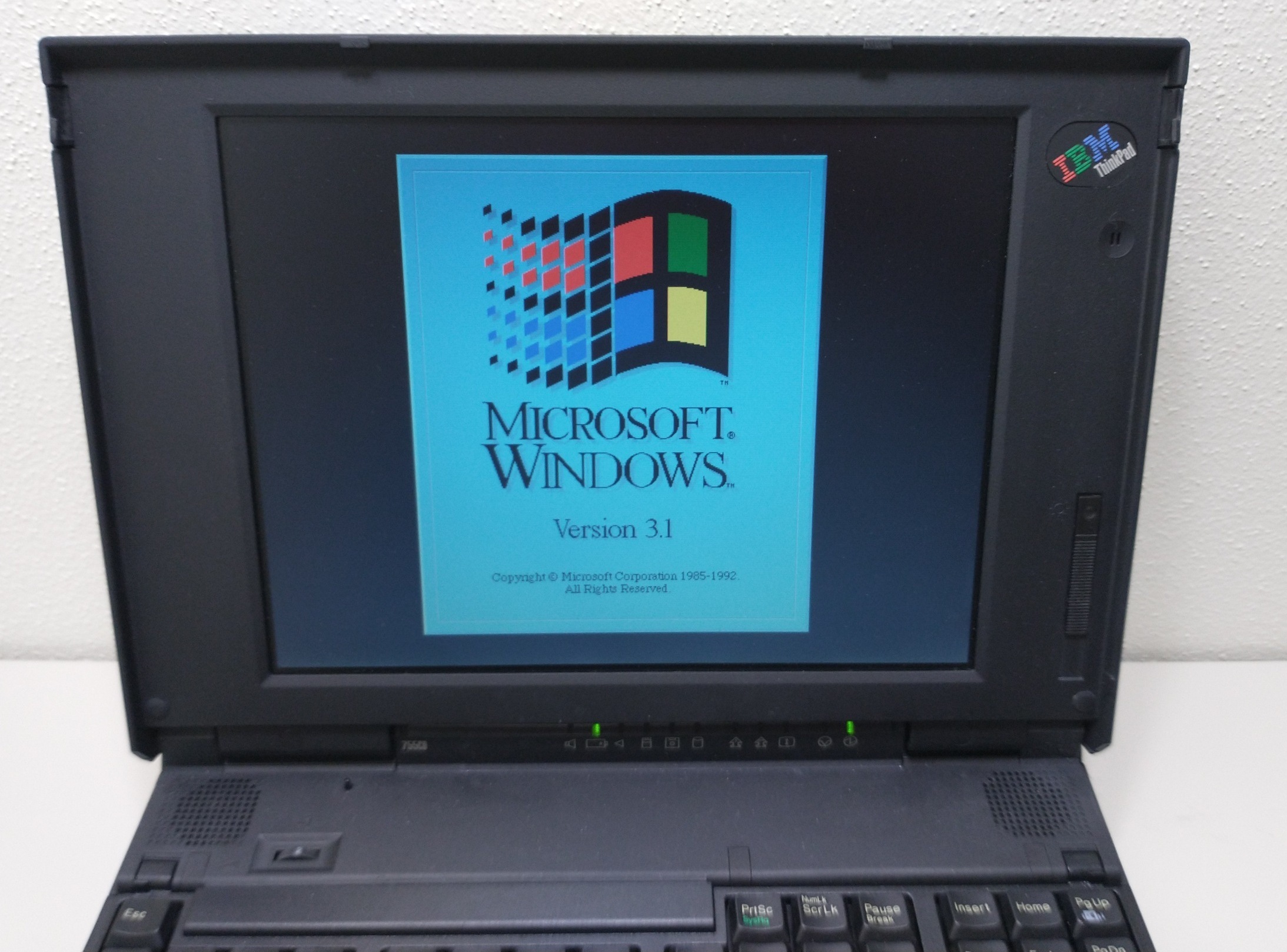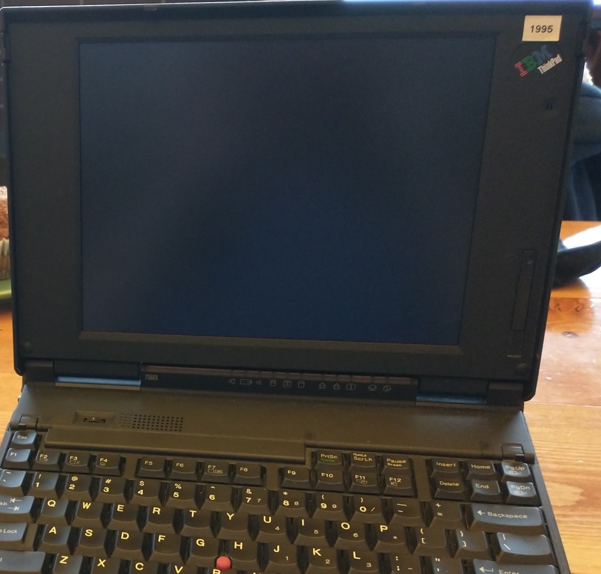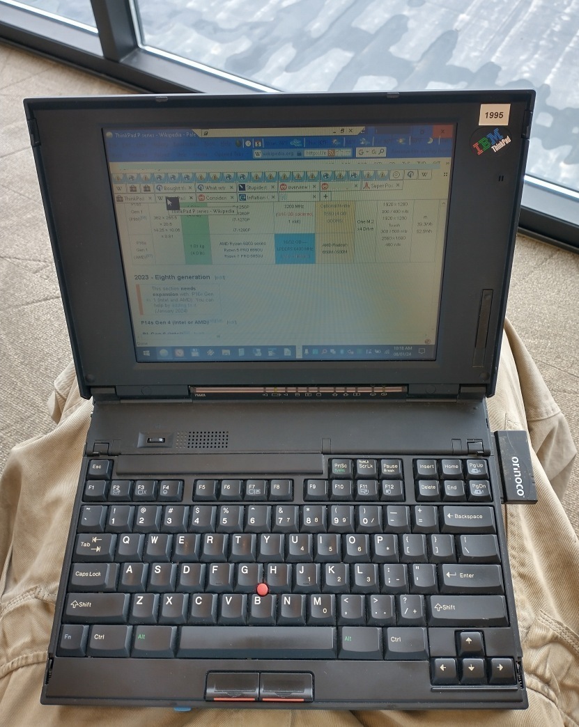 (IBM ThinkPad 755CD in 2025, running on an original 30-year-old battery! Click to zoom in)