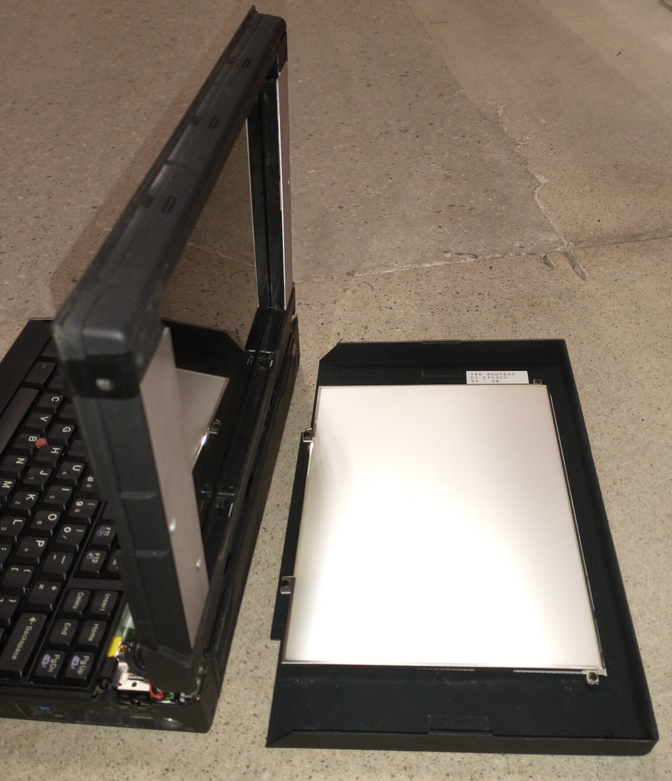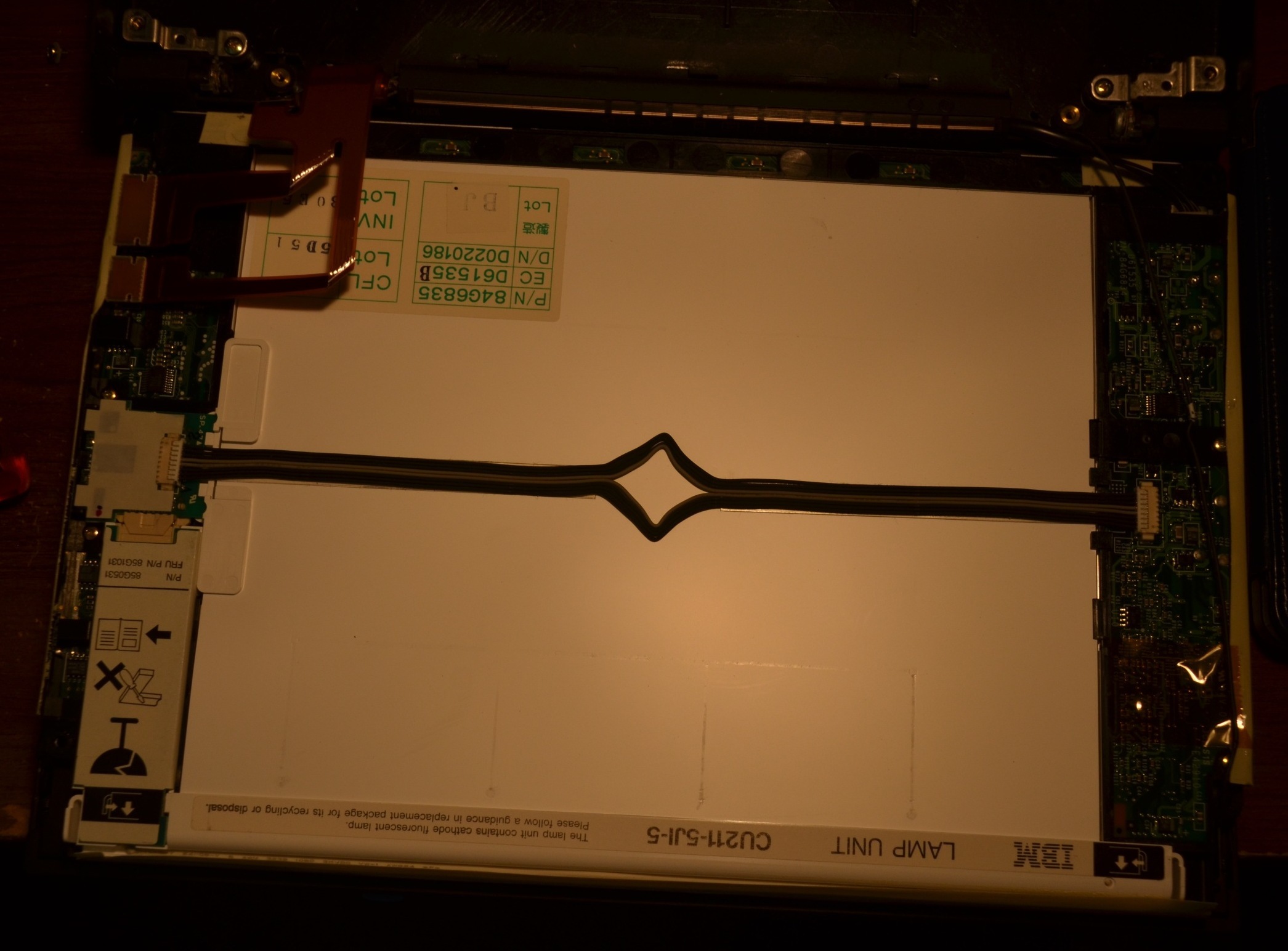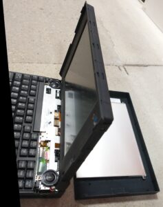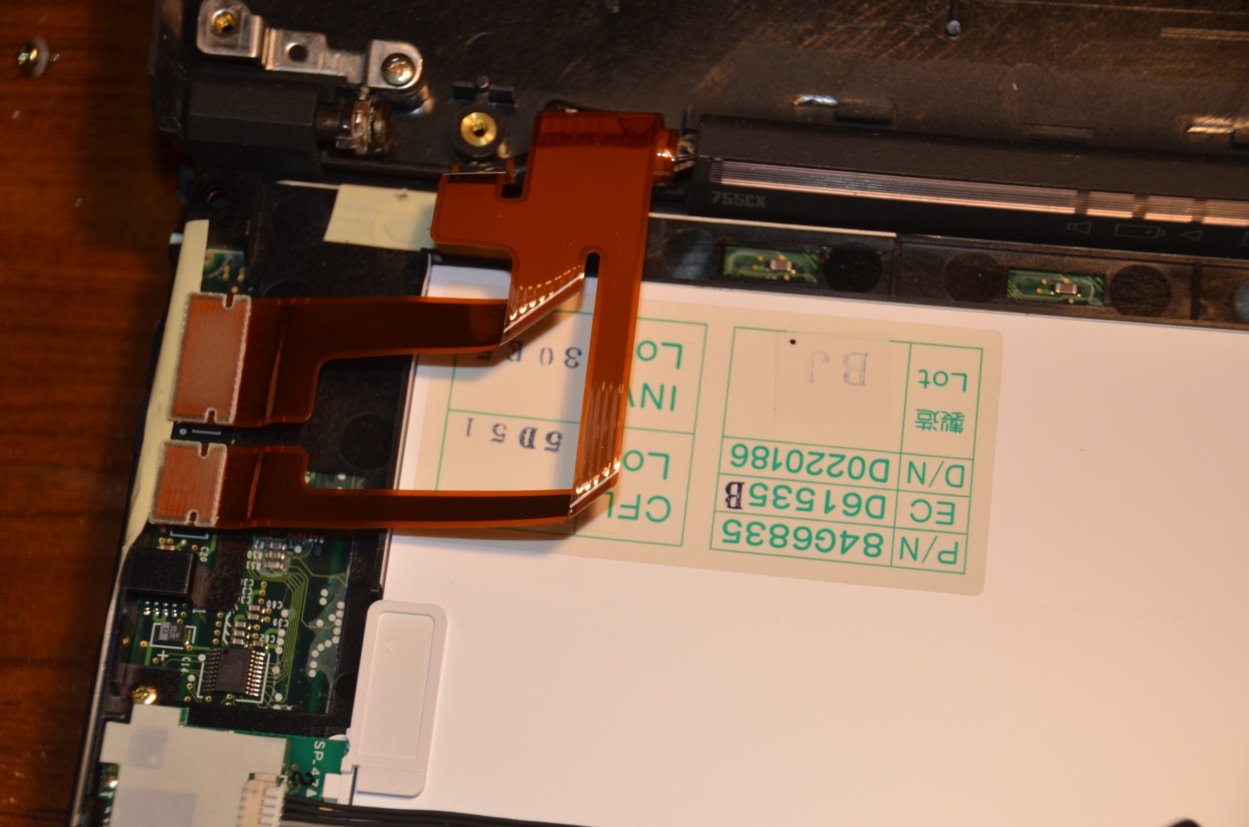 The 755CV and 755CDV are unique in that you can easily detach the rear of the LCD assembly. Before VGA/HDMI projectors, and before SmartBoards, this was very handy, because it allowed you to lay the laptop down on an overhead projector (like a transparency) and project the screen’s image to the audience. (This may seem like a very anachronistic concept to someone that didn’t grow up in an era where “the overhead” and its cart took up one corner of the classroom).