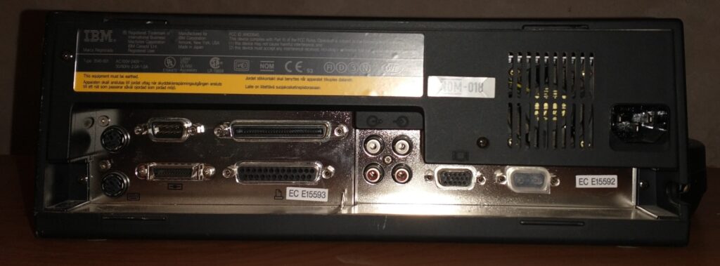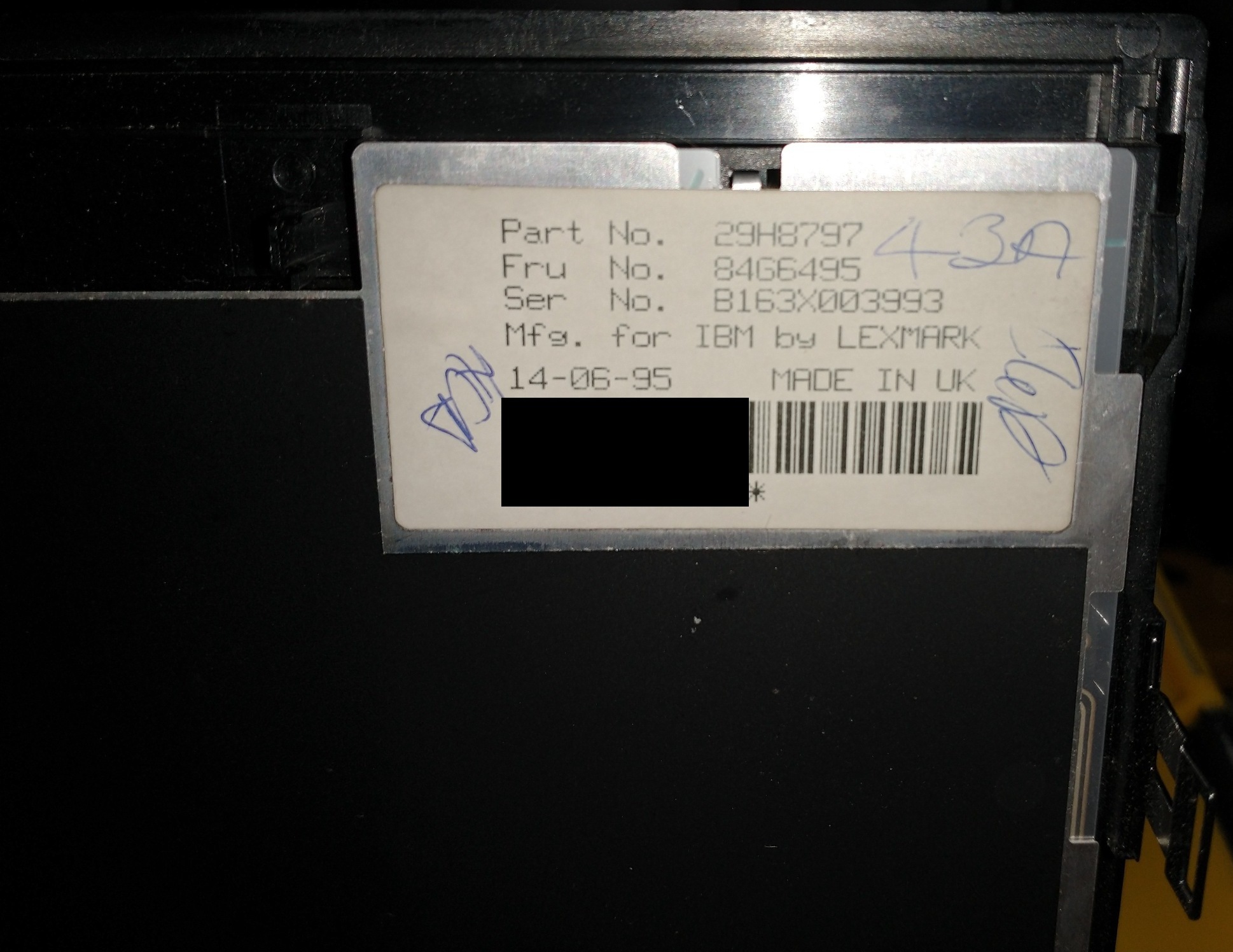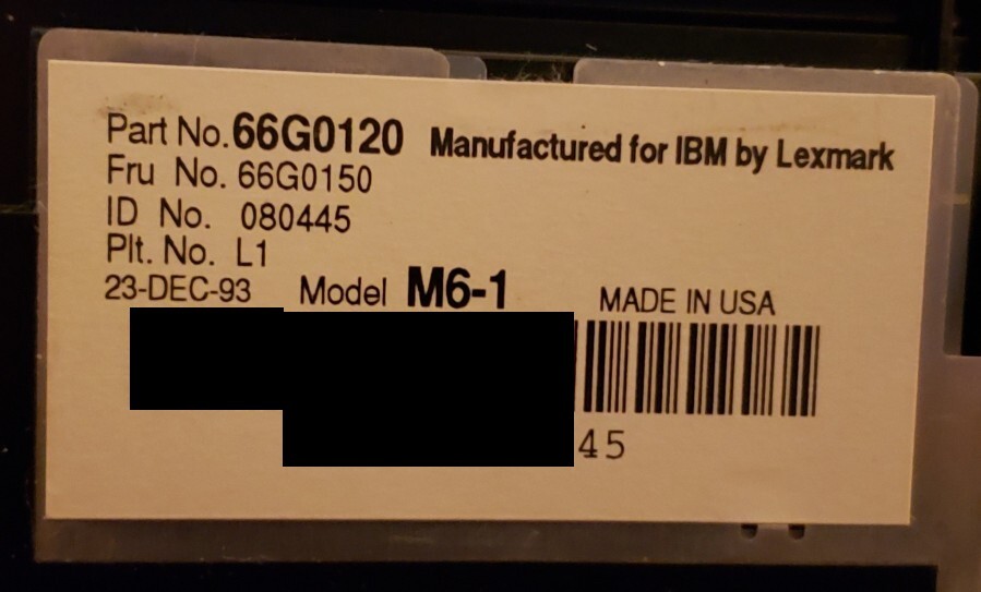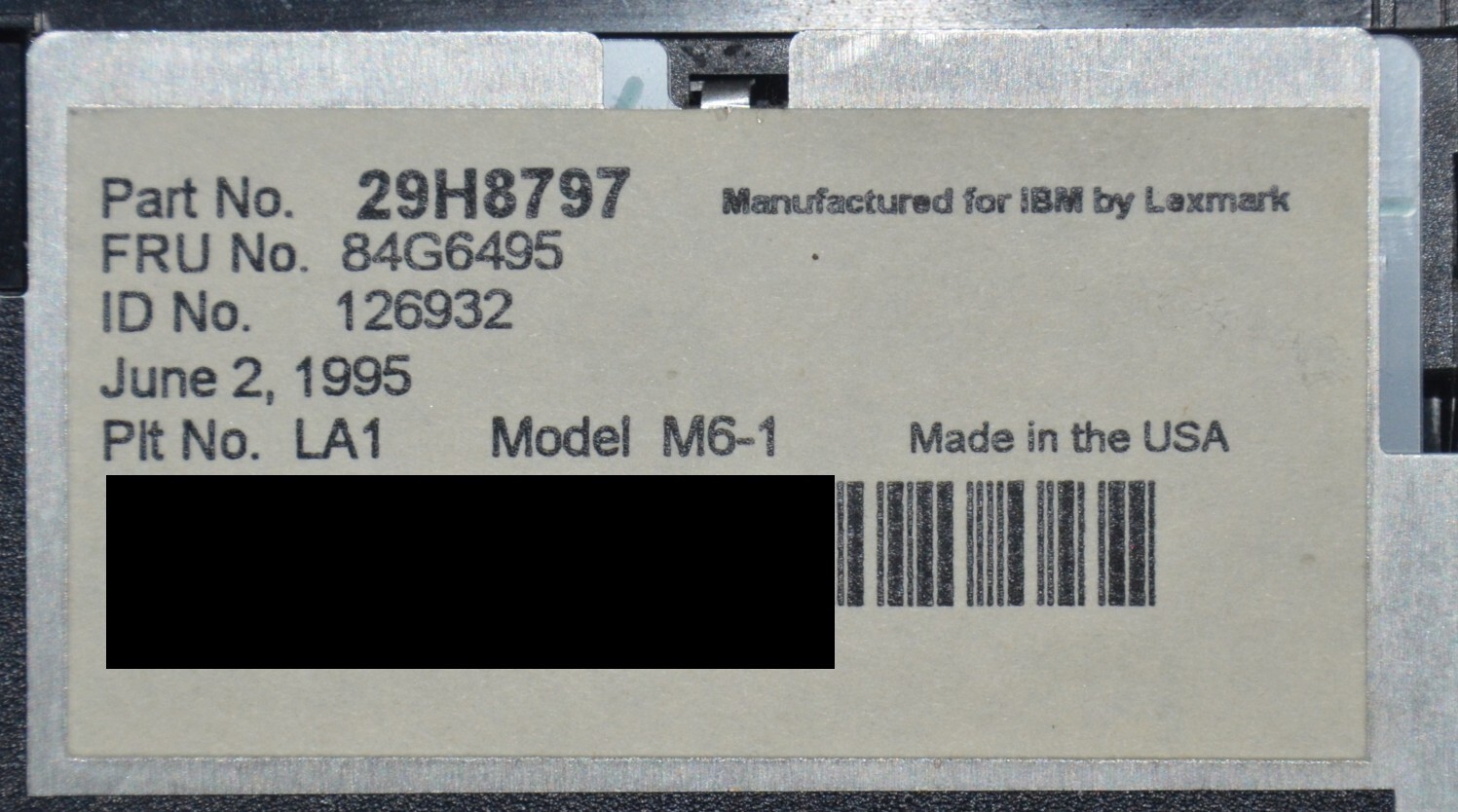 The “enhanced” models have a slightly different keyboard (although still Model M6), which allows you to “lock” the mouse buttons in place by dragging them downwards. There were two versions of the M6 keyboard with locking mouse buttons: Lexmark (earlier, very good key feel, but the mouse button contacts haven’t aged well and were never clicky), and Key Tronic (later, much poorer key feel, but clicky mouse buttons which also still work today). More information can be seen here. The manufacture date is printed clearly on a label under the keyboard (which you can easily access by rotating up the keyboard as mentioned earlier). From this, between the 14 enhanced 755 models I have, it appears they switched to the Key Tronic around December 1996.