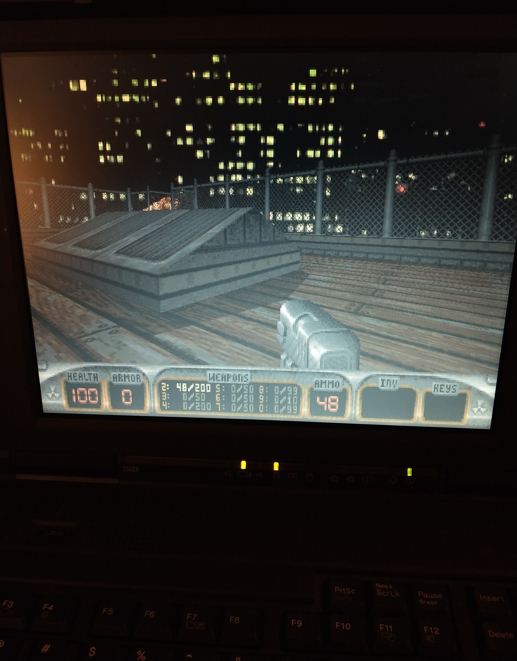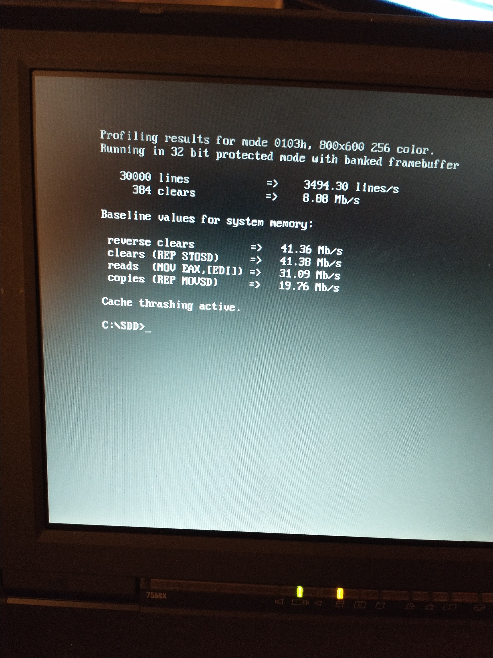 The 755CX also does not support scaling, so in pure MS-DOS or 640×480, you have black borders around the image:
