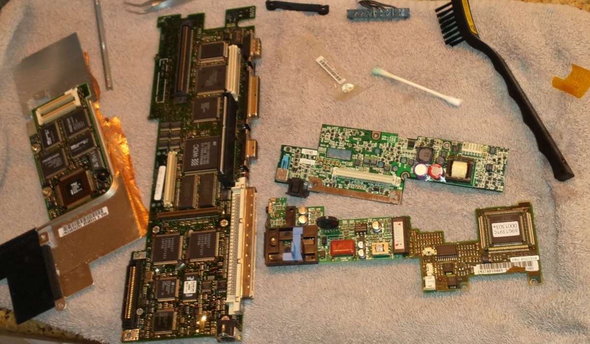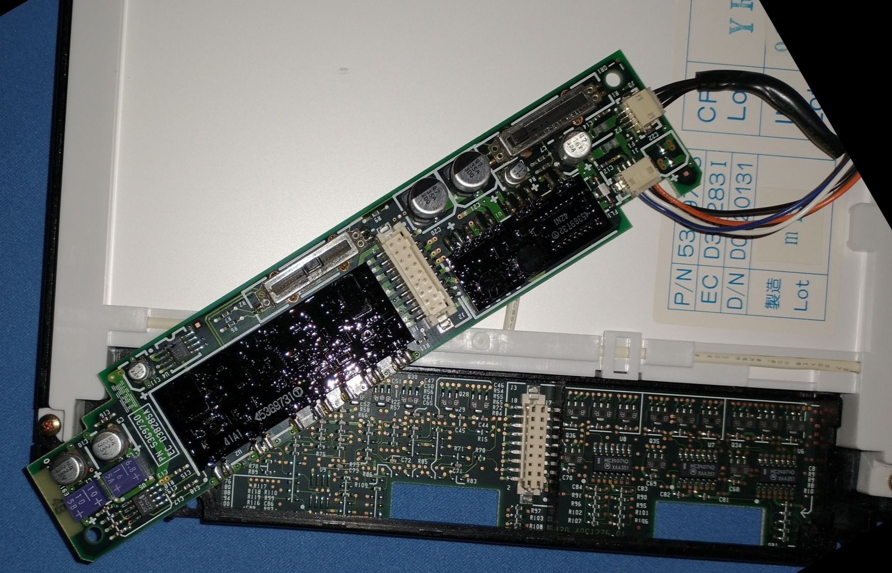 Generally speaking, most of the components are interchangeable between the “enhanced” series. Here are some pictures of me transplanting various parts between a 640×480 755CD and 800×600 755CX (both of which came with the DSP Card):