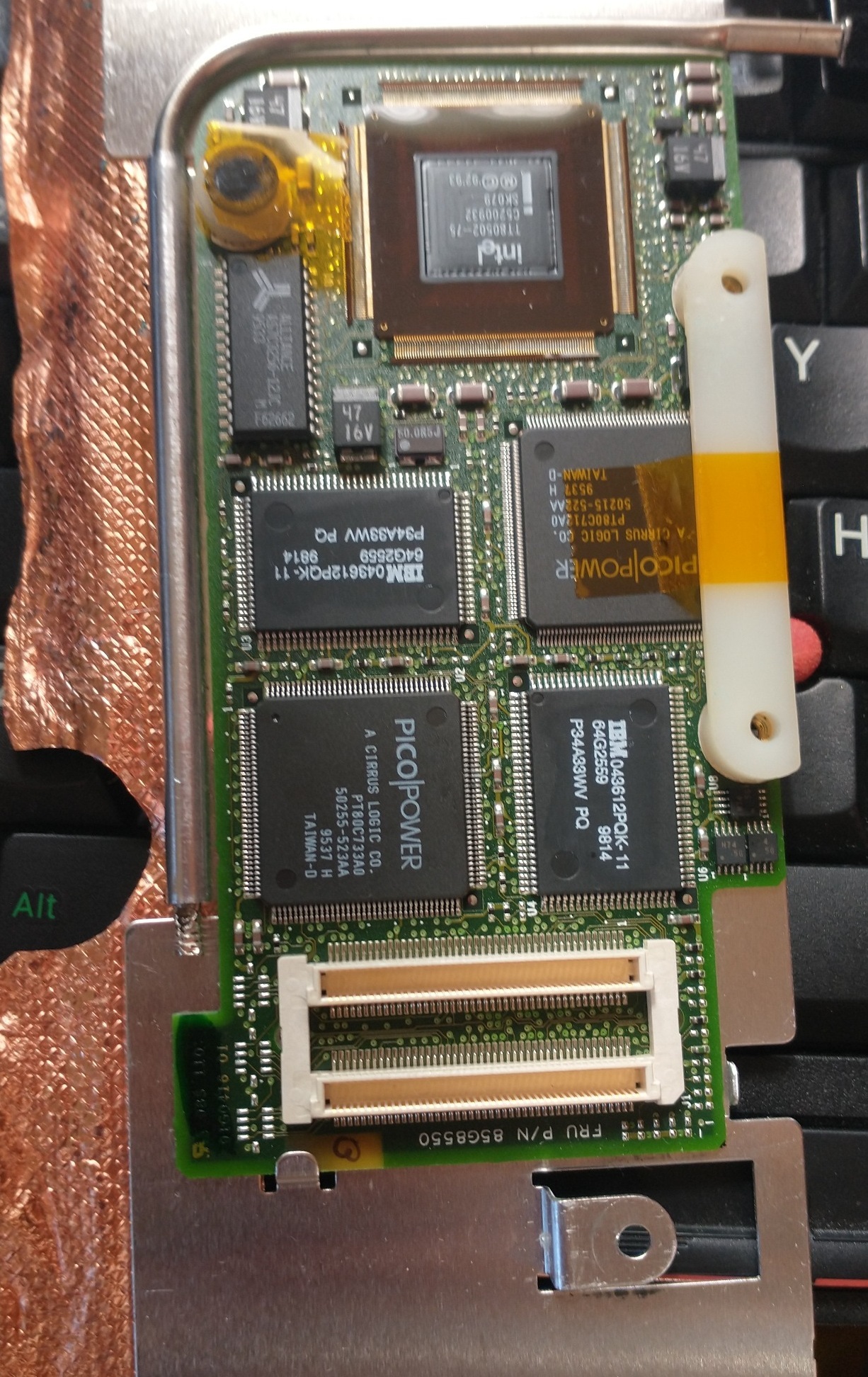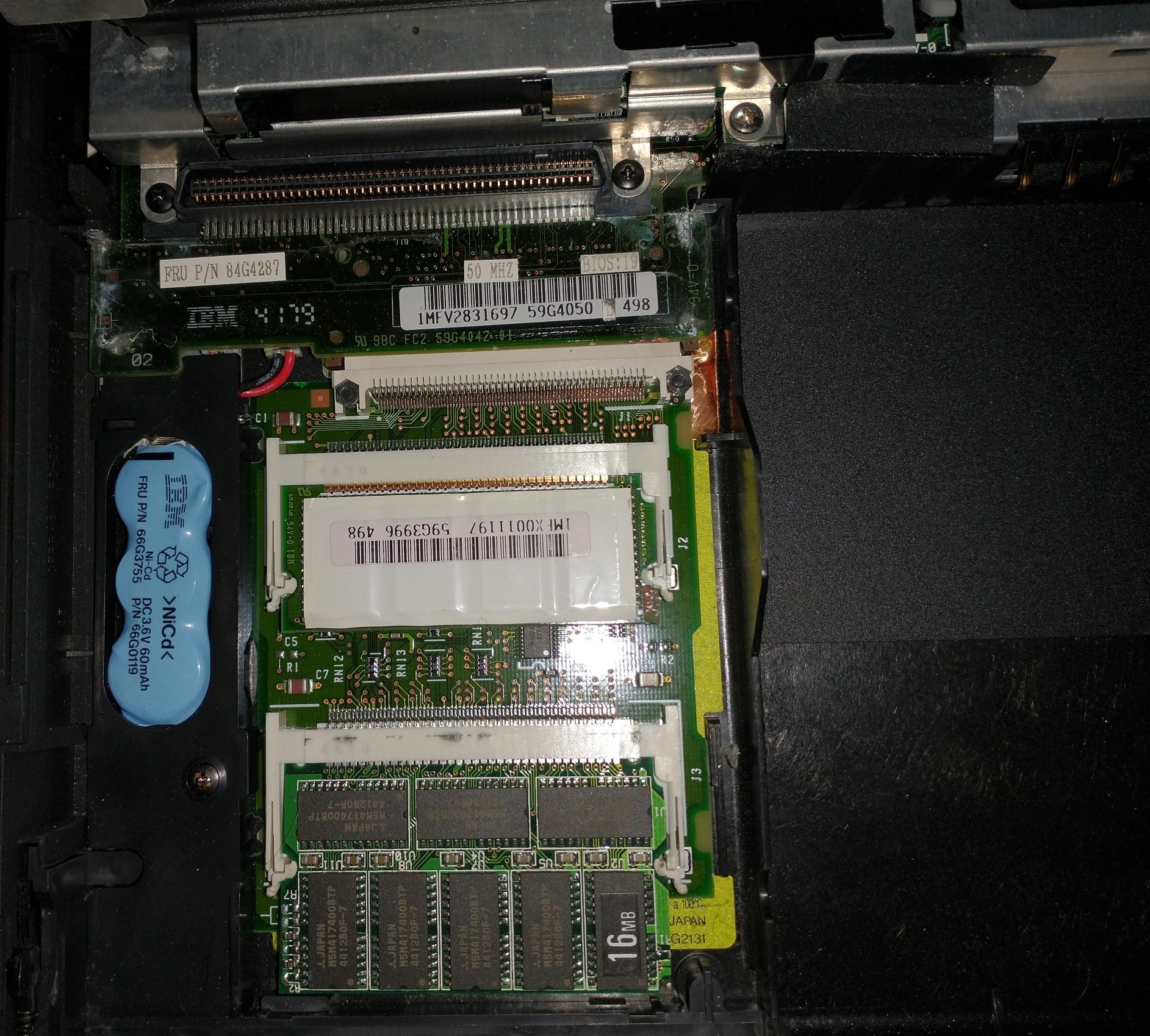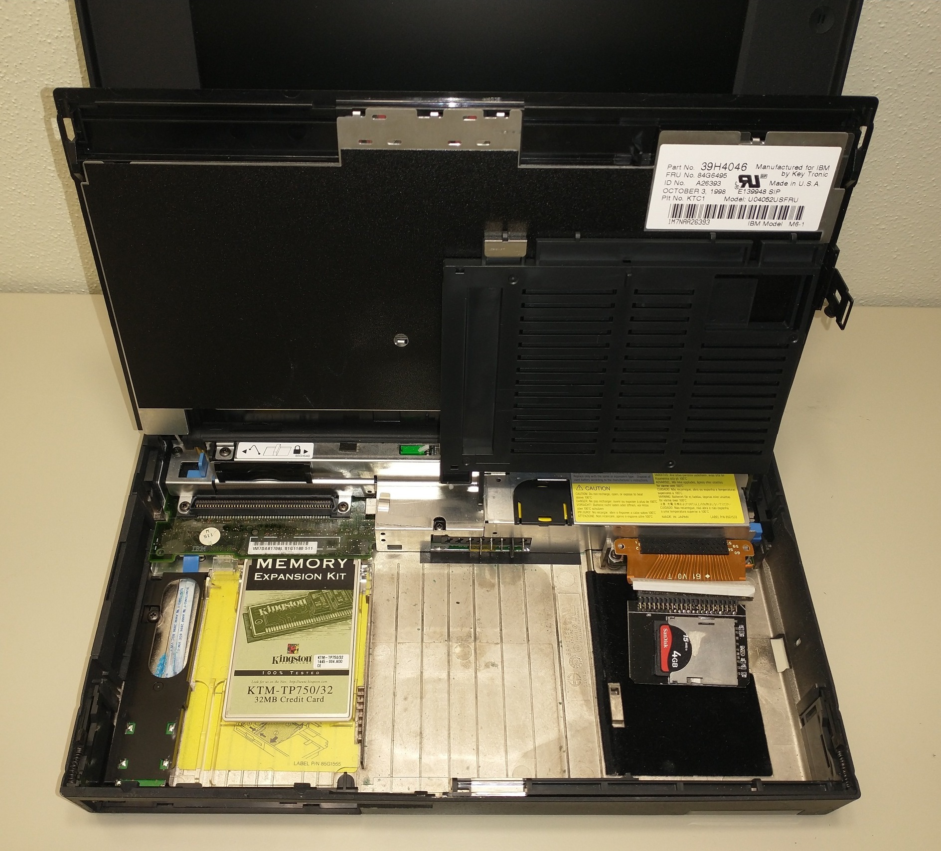 Although I mentioned that these machines rarely fail, if you DO have to replace parts, it’s slightly more difficult than other laptops. Once you remove the keyboard covers, (which I can’t seem to do without breaking the clips on the 755CX), you’ll notice IBM went with a Jenga model for these: the power board is stacked on top of the sound board, which is stacked on top of the Interposer Card, which is stacked on top of the System Board, on the bottom of which you can finally access the Base RAM card. Fortunately, this is all well documented in IBM’s service manuals, with clear vector-based illustrations to guide you through every step of the procedure.