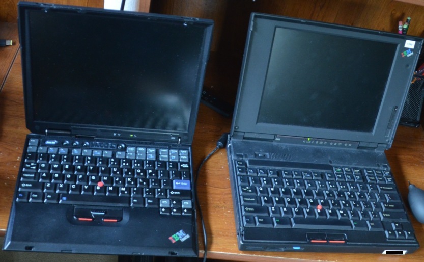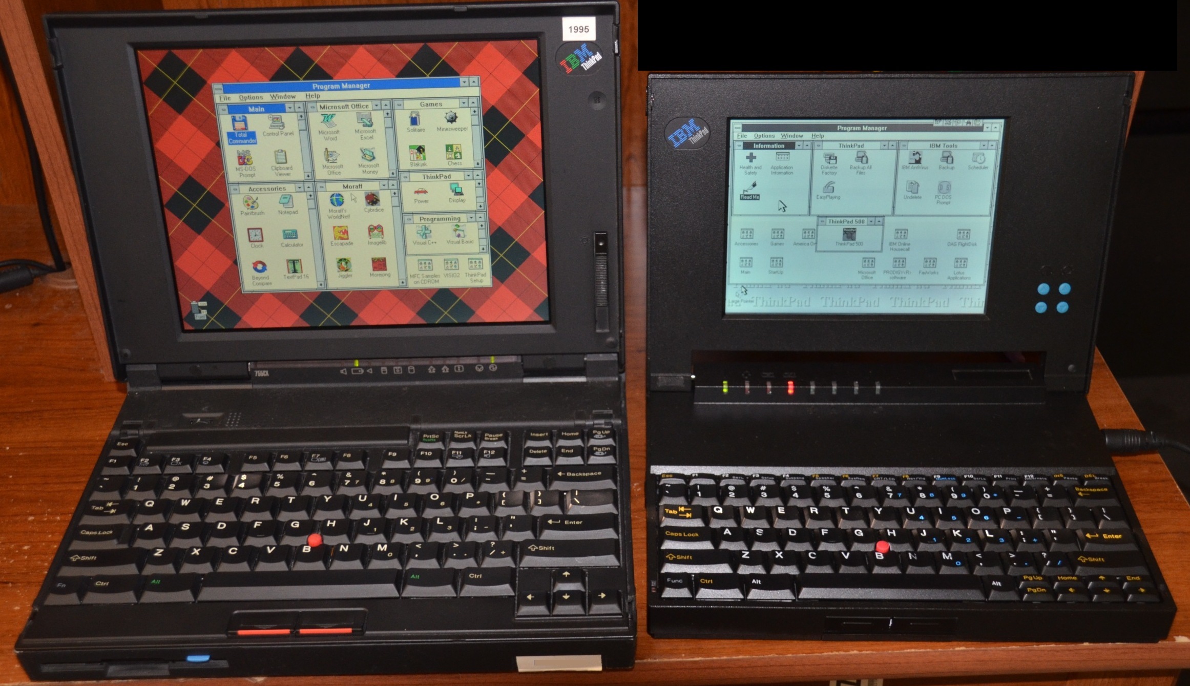 (ThinkPad 755 with various other laptops: ThinkPad 500, ThinkPad 365XD, ThinkPad X32, and ThinkPad 500 + Libretto 70CT).
