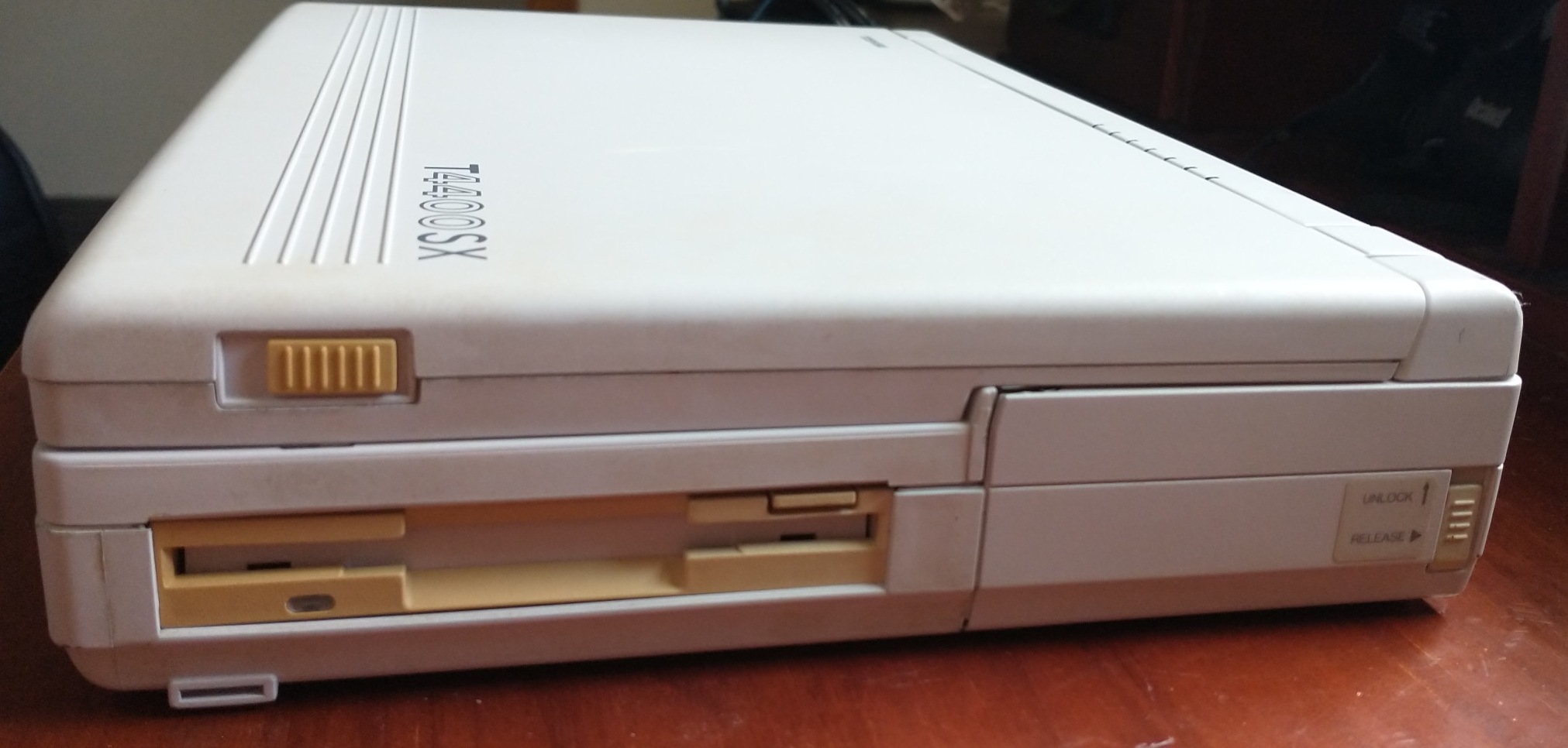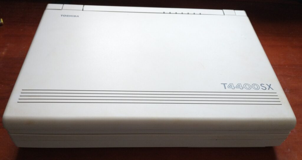 You read the title correctly – the Toshiba T4400SX has an amber gas-plasma screen, but it’s not a luggable like the IBM PS/2 P70, and it’s not a large laptop like the Toshiba T5200… it’s in a notebook form factor! Additionally, it can run on battery power, making this one of the few battery-powered machines available with such a display.
